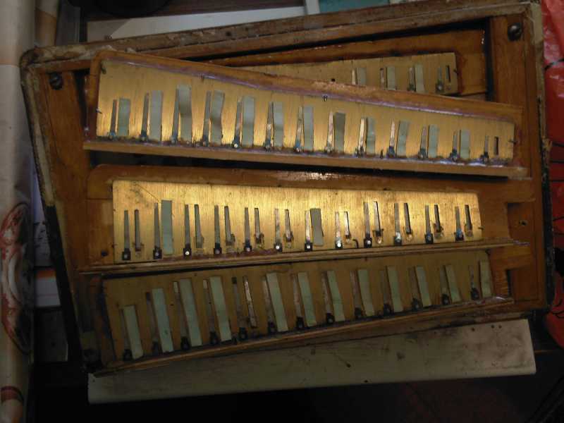 Тональность до-диез, 8-ми планка без заёма, качество планок как и состояние на высоте, никакой ржа нету, с левой стороны одной планки (свистка) не хватает, главное на правой все 8-мь планок на месте, мех целый но под замену. Вообщем работы очень много, но, оно того стоит.