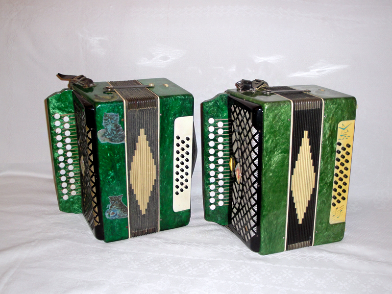 Которая без наклеек - 3-х голосая, с регистром, состояние хорошее