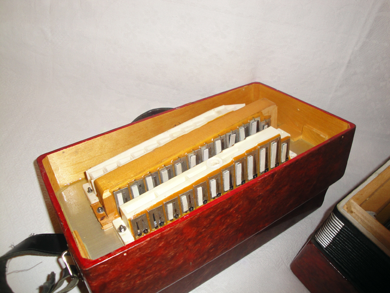 Гармошка 25х25, 3-х голосая, с регистром (2 варианта звучания), тональность Ля-мажор. Компрессия мехов - сто процентов.