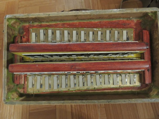Продам вятскую гармонь мастера Рязанова, 12 500 рублей, торг. Гармонь компактная, легкая, на цельных латунных планках, с характерным для вятских гармоней мягким тембром. Гармонь в тональности ре диез (ми бемоль) мажор, трехголосная, цельнопланочная. Отремонтирована, настроена, полностью в рабочем состоянии, мех отличный, компрессия в норме, заменены уплотнения, замена левая дека, заменена левая клавиатура на валиковую вместе с горкой, заменен правый гриф вместе с клавиатурой. Гармонь полностью восстановлена из состояния "дров". Звук вятский шикарный.