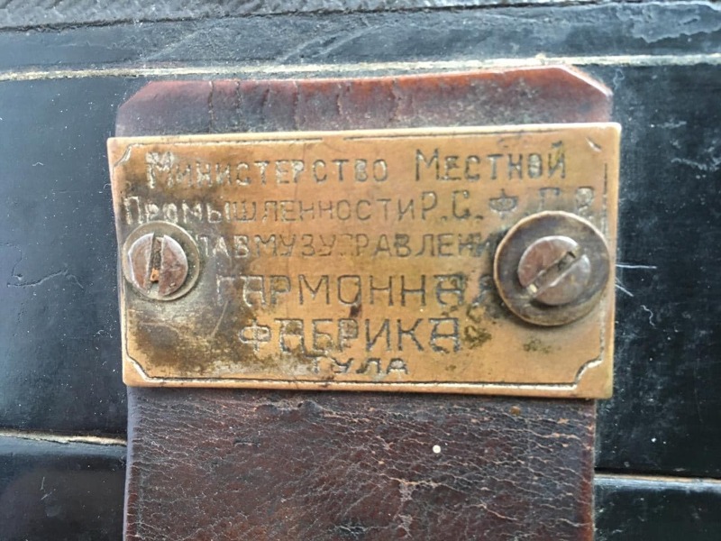 Здравствуйте. Хочу выяснить подлинность гармони и тот факт что как же так могло произойти, что гармонь которую мастер производил самостоятельно, вне фабрики, могла иметь (прикрепленно на фото) бляху Министерства РСФСР ?